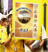 法轮功团体表示,[5月13日]这一天是法轮功创始人李洪志先生的生日,也是他在1992年开始传授法轮功的日子。