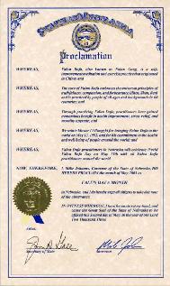 美国内布拉斯加州州长郑重宣布法轮大法月
