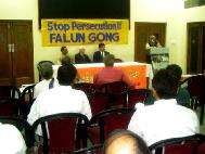 今天是具有历史意义的一天。我们成立了一个新组织:印度法轮功之友。目的是为了促进在中国的法轮功修炼者的信仰自由。我们希望印度人民能伸出援手,帮助制止这场对非暴力精神修炼的迫害。我们衷心希望所有支持宗教信仰自由的人,正如大多数的印度人,加入到我们的队伍中来。