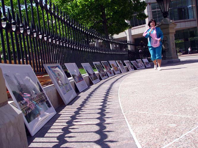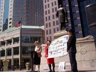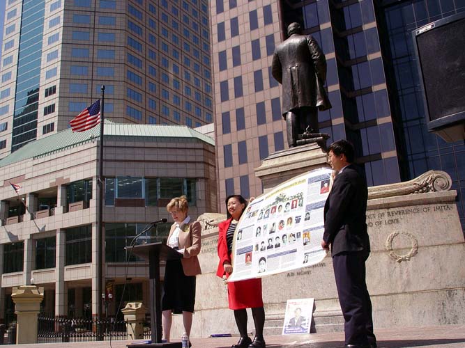 | 俄亥俄州立大学经济学教授、法轮功学员露西亚-顿恩(Lucia Dunn)发言 | 俄亥俄州议员戴尔-米勒(Dale Miller)发言 | 正法之路图片展 |
