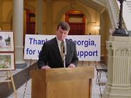 5月13日是伟大的师尊五十二华诞,也是世界法轮大法日。中午从12点到1点,学员们在州政府南大厅进行了隆重的庆祝活动。会上,先由乔治亚州州长的代表宣读了州长办公室的褒奖状,然后又分别宣读了来自亚特兰大市长弗兰克林女士,乔州众议员约翰·路易斯,众议员大卫·斯考特的贺信。市长和议员们都在信中高度赞扬了法轮大法的真、善、忍,并祝贺庆祝活动和图片展圆满成功。接着,学员们向与会者表演了祥和、优美的五套功法,获得阵阵掌声。随后,前乔州众议员鲍勃·巴尔和Georgia Southern University 的约翰·帕索尔教授也分别发表了演讲,赞扬大法的美好,谴责了在中国发生着的对法轮功学员的残酷人权迫害。最后,法轮功学员表演了自编自导的一些节目,展现了学员们多才多艺的一面,也让在场的美国朋友们领略了美妙的东方文化。
