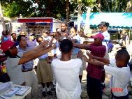3、一天早上我去倒垃圾,那有两辆大货车停着,两位司机在谈笑着。正念一出我就想:怎么没带真相呢?要有真相给他们多好,大早上的没带那就动口讲吧!刚要走向前去,就看到我脚前有一份真相传单,好象是为我准备的、安排好了的——叠的平平整整的象没有打开过。是“天地苍生”。我当时真是体会到了:弟子需要什么,只要念正,师父就会慈悲安排什么——要什么有什么。我拿起真相,掸去尘土,走到两个司机面前说:“两位大哥,闲着没事看看大法真相吧!了解了大法真相是有大福分的,你们也是天地之间的苍生,好好珍惜呀!”他俩看着我,几乎都同时用双手来接。看着他俩高兴的笑脸,我笑着走开。身后传来他俩的感慨:“世上的好人怎么都好到这份上了,真是好,不敢想象。”