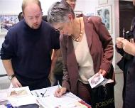 展销会的组织者说,「我很喜欢法轮功的五套功法,让人非常放松,我需要它。」她允许我们把法轮功的真相材料和请愿书留在展厅的一张桌子上。她说,「你们可以随时来这里向人们介绍法轮功。」