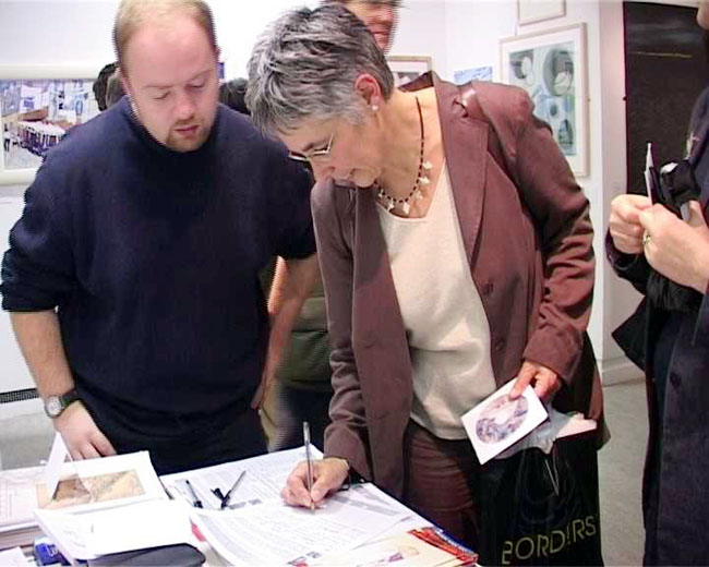 | 现场绘画表演 | 观众在请愿书上签名 |