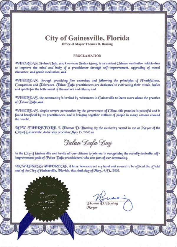 公元2003年5月9日于佛罗里达州甘士维尔市(Gainesville)签字并加盖官印以兹证明。
