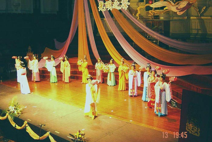 【明慧网2003年5月18日】2003年5月13日澳洲法轮大法修炼者从早上8:30分云集到悉尼市中心的TownHall广场,开始了第四届世界法轮大法日的庆祝活动。纽省会上议员出席了庆祝活动并致贺词。晚上7:30分开始了大型法轮大法歌舞晚会。有近千人出席了这一晚会。