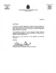 加拿大财政部次长的贺信