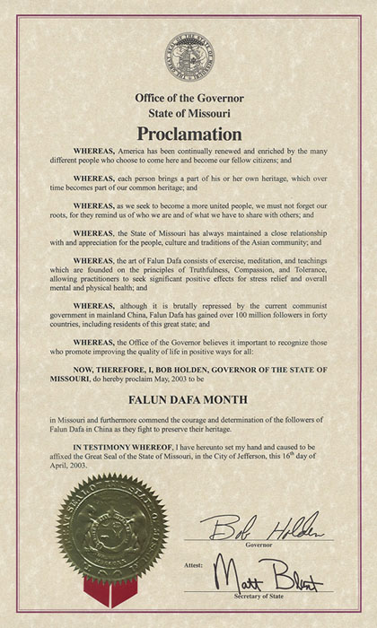 威斯康星州州长褒奖法轮大法