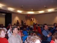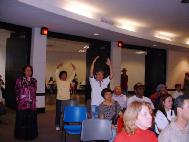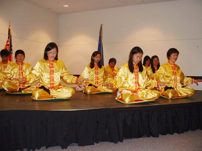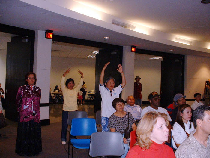 学员应文化节的邀请表演了五套功法,学员在台上表演时,台下的观众全神贯注,有的观众在观众席上跟着台上的学员炼功。表演结束后不少观众到我们的摊位咨询、索取资料;一位西装革履的男士在我们将要离开的最后一分钟赶到我们的摊位,当他找到我们时,他深深地松了口气说:“终于找到你们了!”