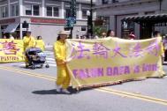 【明慧网2003年5月4日】旧金山湾区山景城(Mountain View)的社区游行是该市居民每年一度的传统活动,今年的游行于4月26日星期六举行,是第二十五次了。法轮大法学员已经连续四年参加。