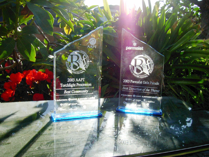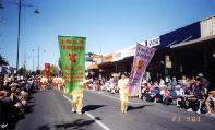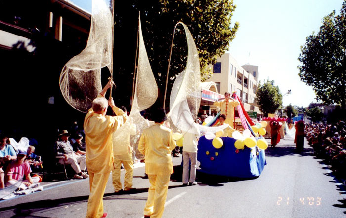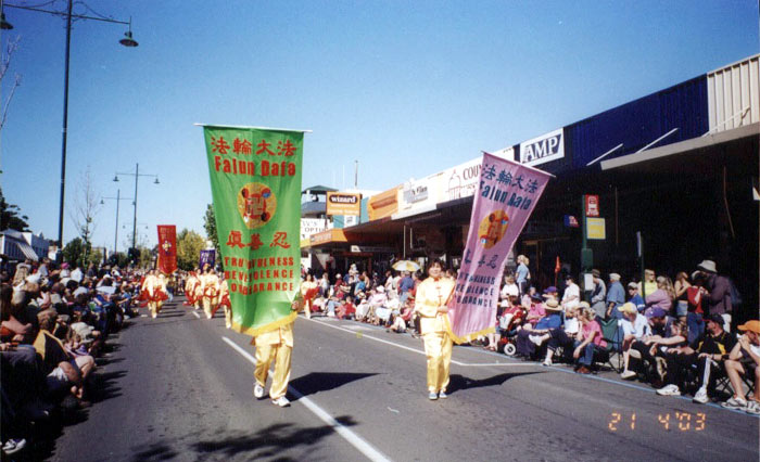 【明慧网2003年5月6日】墨尔本法轮功学员在今年墨尔本北部著名淘金城及旅游城班迪沟(Bendigo)的复活节“黄金的过去,金色的未来”(Golden Past, Golden Future)庆典中以出色的表现分别获得“最佳社团奖(Best Community)”及“最佳主题表现奖(Best Depiction of the Theme)”。庆典组委会向法轮功学员致信感谢,并将学员游行的录像资料珍重地收入班迪沟市的文档资料之中,作为对外推介班的资料之一。