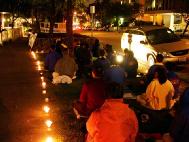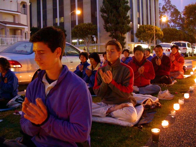 洛杉矶大法弟子中领馆前烛光守夜 支持审判邪恶之首(图)