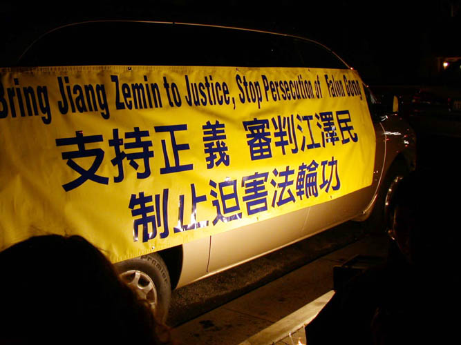 【明慧网2003年5月9日】5月7日晚7点至10点,部份洛杉矶大法弟子来到中领馆前集中发正念,支持对邪恶之首江××的正义审判。