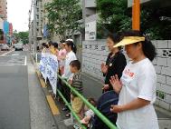 6月7、8两日10时至23时,日本大法弟子汇集在中国使馆前,每逢正点发正念,支持在全球范围内以反人类罪、酷刑罪及群体灭绝罪公审中国人权恶棍江泽民。