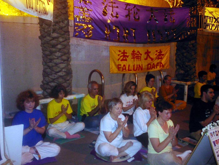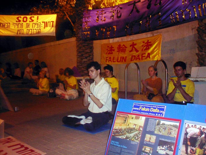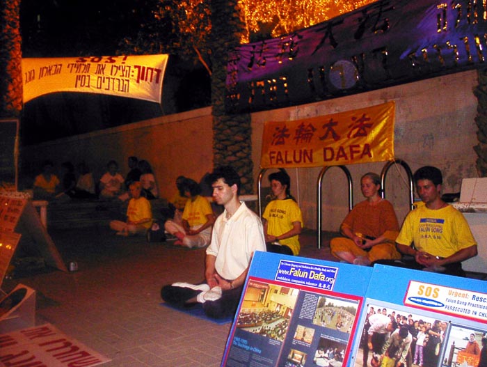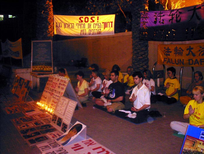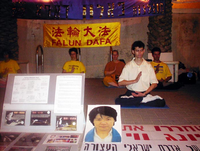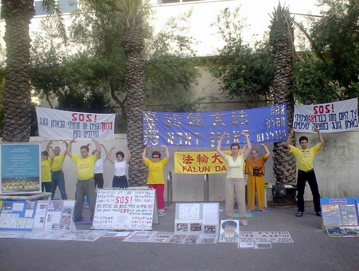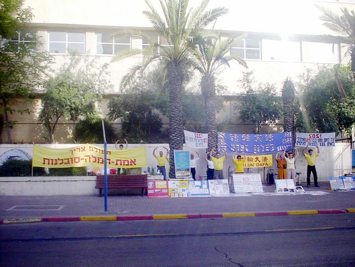 图片报道:以色列大法弟子连续40小时在中使馆前发正念