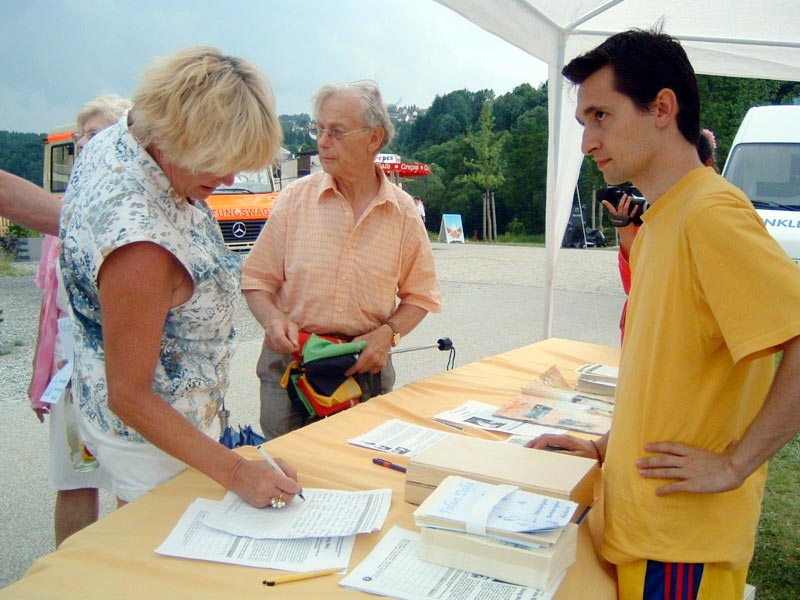 瓜德路普(法国)大法弟子在气功节上洪法讲真相(图)
