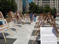 在座谈会上,与会者观看了两部对比鲜明的录像片,第一部播放的是祥和的法轮功功法,第二部播放了中国中央电视台关于2001年1月发生在天安门广场的“自焚”事件的报导,其报导破绽百出,被广泛疑为是一场预先导演好的骗局。