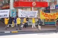| 在Queen street街上游行 | 留学生首次得知江被诉的消息,震惊不已 | |