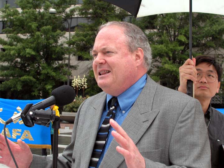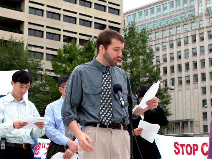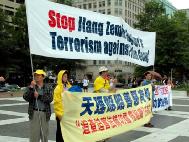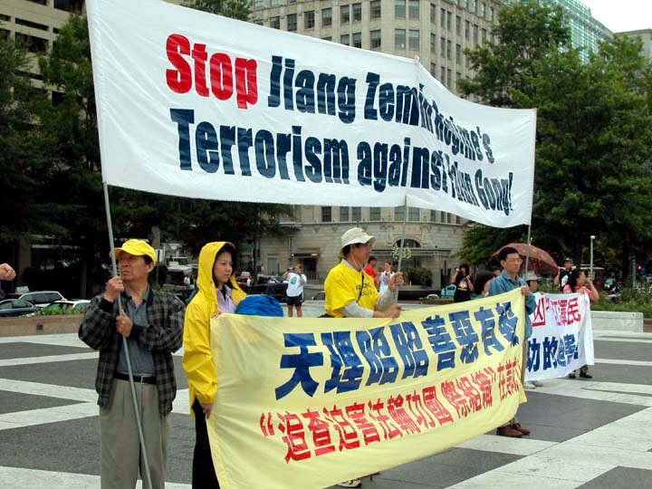 围绕江××是否具有“元首豁免权”的问题,“自由中国运动”的成员周勇军说:“纽伦堡的第三条原则为:如果一个人作为国家元首违反了国际法,不享有豁免权。日内瓦公约第四条规定:犯有群体灭绝罪的人,无论是宪法规定的统治者、官员和个人都应受到处罚。南斯拉夫和卢旺达的前领导人、以及智利前总统皮诺切特都是前车之鉴。”在发言的最后,周勇军说:“正义是美国价值的重要组成部份,正因为如此,全世界的人们才对美国充满向往和尊敬,并在这片充满希望的土地上寻求庇护。我们怎么能牺牲我们的正义与一个外国的独裁者、屠杀其本国人民的屠夫做交易呢?”