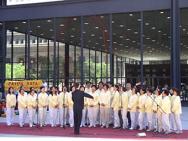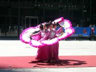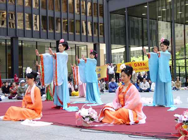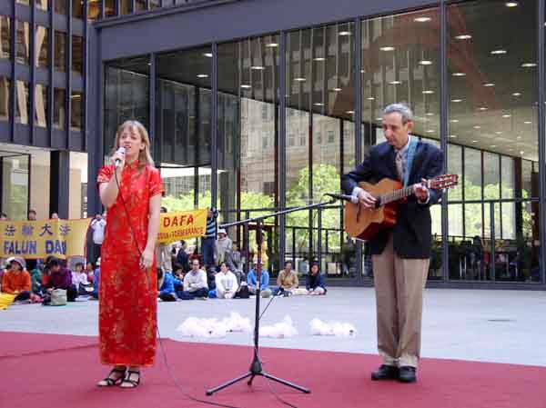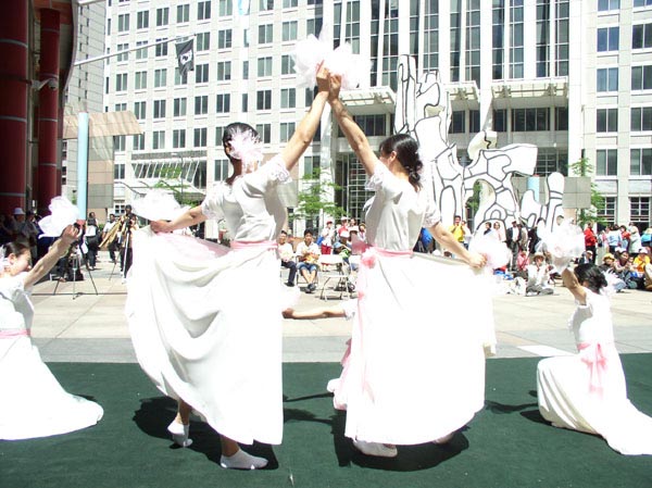 两台演出节目丰富多彩,参加演出的学员来自世界各地。从清新活泼的儿童歌舞,悠扬的中国民族乐器演奏,到西人学员演唱的中文大法歌曲和美不胜收的舞蹈,吸引许多行人纷纷驻足观看,博得全场观众的阵阵掌声。