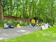 6月20日、21日、22日荷兰部分学员聚集在中使馆前密集发正念,支持全球公审江××。