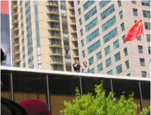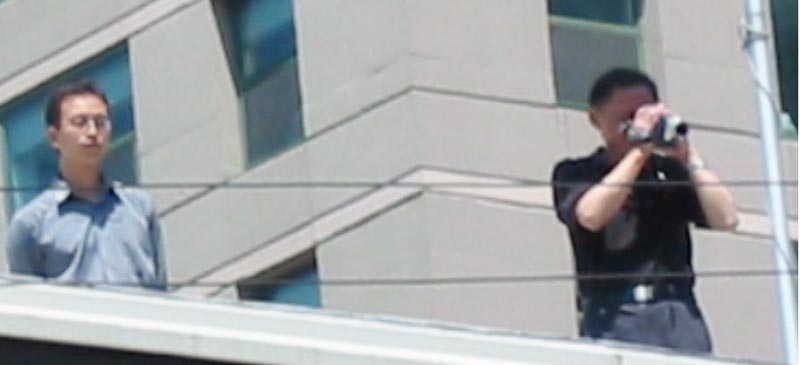 当一支由1500多名法轮功学员组成的游行队伍从芝加哥市中心著名的联邦广场出发来带到中国驻芝加哥使馆前时,两个中共驻芝加哥使馆官员爬上使馆屋顶对着游行队伍拍摄,企图为迫害海外的法轮功学员搜集资料。在海外,江氏流氓集团多次指使其驻外机构收集法轮功学员的个人资料,拍照、录像等,制造侵犯人权的“黑名单”,以阻止法轮功学员入境大陆、香港等地,并株连迫害他们在大陆的亲友。然而他们没想到的是,他们这一侵犯人权的行为也被记录下来,并可能成为全球公审江泽民行动中江集团迫害海外法轮功学员的新证据。
