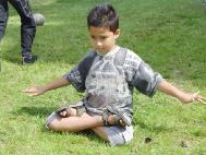 值得一提的是有两个11岁和7岁来自不同家庭的小朋友学功的故事。11岁的小朋友看到我们在那里炼功就跟我们认真地学了起来,五套功法学会后就跟我们一同炼。前后几个小时没有离开我们。而那个只有7岁的小朋友看到我们后就不走了,也跟学员聚精会神地学了起来。当这位小朋友的父亲看到他的孩子在跟我们一起双盘打坐,才松了一口气,说他已经找他很久了,并告诉我们这孩子在家里常常这样双盘打坐。听到这些学员心里都明白这孩子是来得法的。