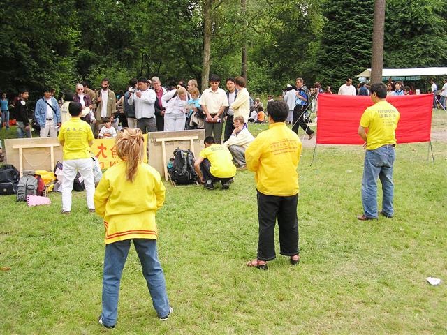【明慧网2003年6月25日】6月21日星期六,阳光明媚,和风习习,在荷兰东部城市阿普杜美丽幽静的山林公园里举办了由荷兰移民局和难民协会组织的一年一度的大型多元文化节。大约2-3万居住在荷兰各地的外国移民、难民及荷兰当地居民参加了这次多元文化盛会。荷兰法轮功学员也应邀参加了功法演示。