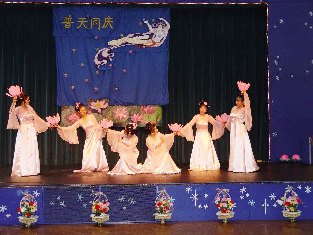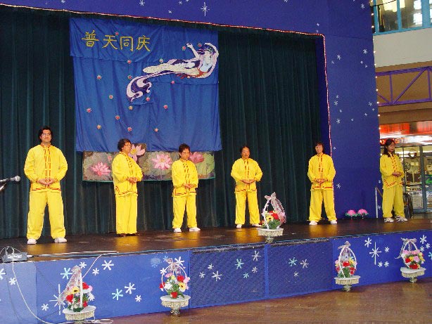 整场文艺演出穿插了大法的五套功法表演。主持人恰到好处地向观众介绍了法轮功和各套功法的基本原理。有西人弟子说,此次表演抱轮时如同抱了一个大火轮,能量强烈。