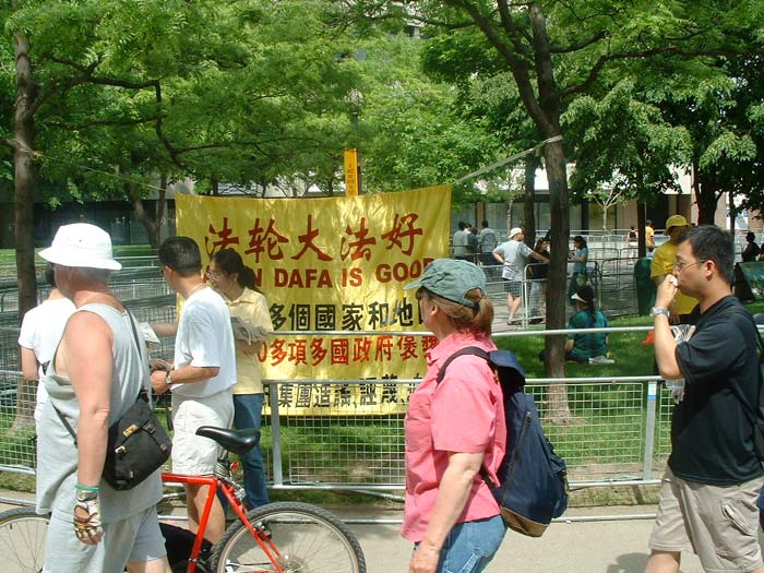 【明慧网2003年6月26日】6月22日,加拿大多伦多法轮功学员在龙舟节洪法