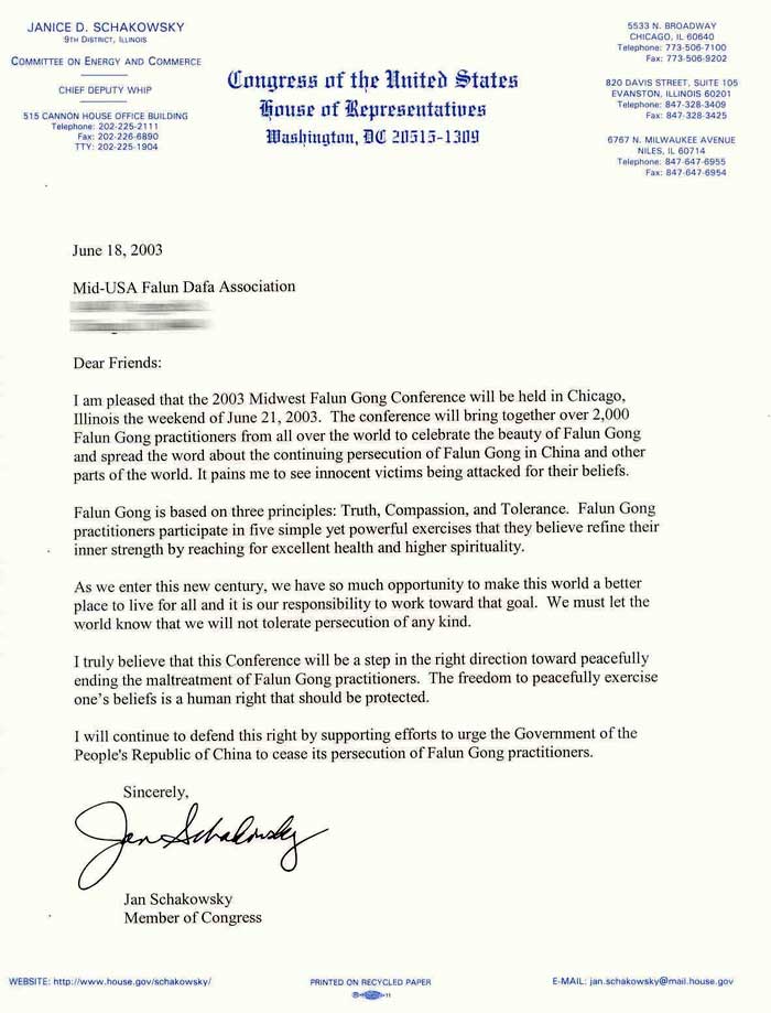 我很高兴2003年中西部地区法轮功会议将于6月21日的周末在伊利诺依的芝加哥市举行。超过2000名法轮功学员将从世界各地汇聚于此庆祝法轮功的美好,并告诉人们法轮功在中国所遭受的持续迫害。看到无辜的受害者因为他们的信仰而受到攻击,我感到心痛。
