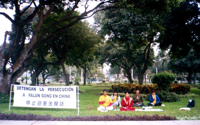 图片报道:秘鲁大法弟子在中使馆前声援起诉江泽民