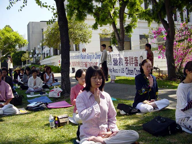 【明慧网2003年6月3日】五月三十一日星期六下午两点至四点,洛杉矶法轮功学员在中国驻洛杉矶总领事馆前集会抗议,声援在中国遭到非法关押判刑的美国公民、法轮功学员李祥春。