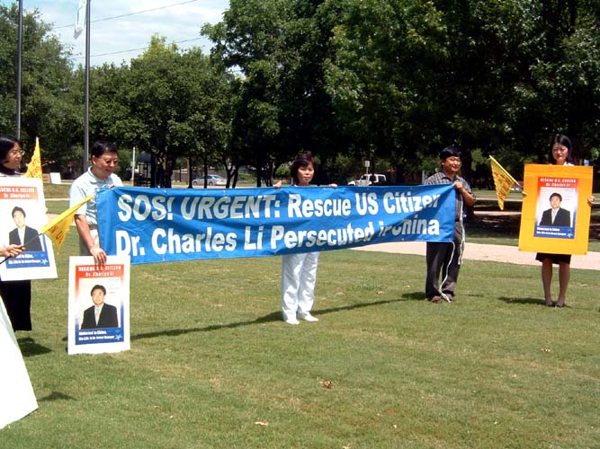 【明慧网2003年6月5日】被中国政府非法拘捕并判刑三年的美国公民李祥春医生因保护自己的应有的权利,坚持揭露邪恶的真相,不向邪恶低头于5月27日在狱中绝食。德克萨斯州达拉斯的法轮功学员于6月3日中午在李察逊区市市政广场集会、发正念,声援李祥春医生,同时紧急呼吁各界伸出援手,帮助他尽早安全返美。