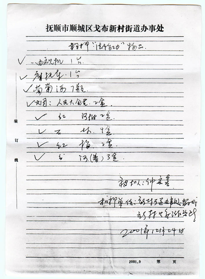 下面是收条上详细写明的“扣押物品”。当然,这些也只是被洗劫的一部分东西: