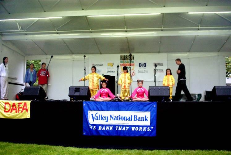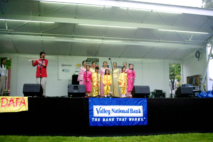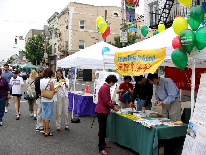 【明慧网2003年6月7日】一年一度的新泽西州哈立森(Harrison)市多族裔文化节于5月31日及6月1日举行。哈立森市是一个位于新州北部的小镇,由于其便利的交通条件,近几年来该市的华人人口急剧增加。当地法轮功学员同当地政府积极合作,融入华人社区,从而为深入讲清真象创造了一个良好的环境。该市市议会先后通过褒奖大法和谴责对法轮功学员迫害的决议,同时市政府为每周放映讲清真象的影片提供免费场所。该市华人社团的负责人也同法轮功学员保持良好的关系,大家相互合作,气氛融洽。法轮功学员以这次多族裔文化节为契机,再一次将大法的美好展现给当地人民。