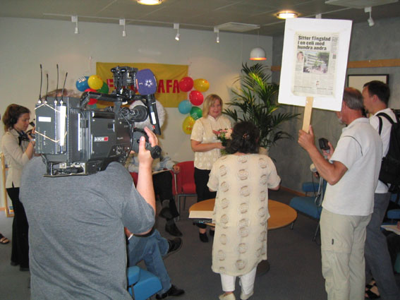 【明慧网2003年6月8日】6月7日起,瑞典斯德哥尔摩部分大法弟子集中在中使馆旁进行为期两天的整点发正念,与全球大法弟子一道齐心协力助师正法,用最纯最强的正念进一步彻底清理另外空间的邪恶残余,坚决支持公审人间邪恶之首江×× 。