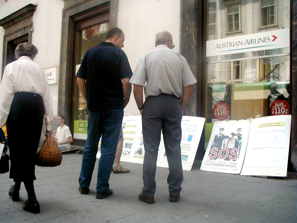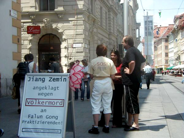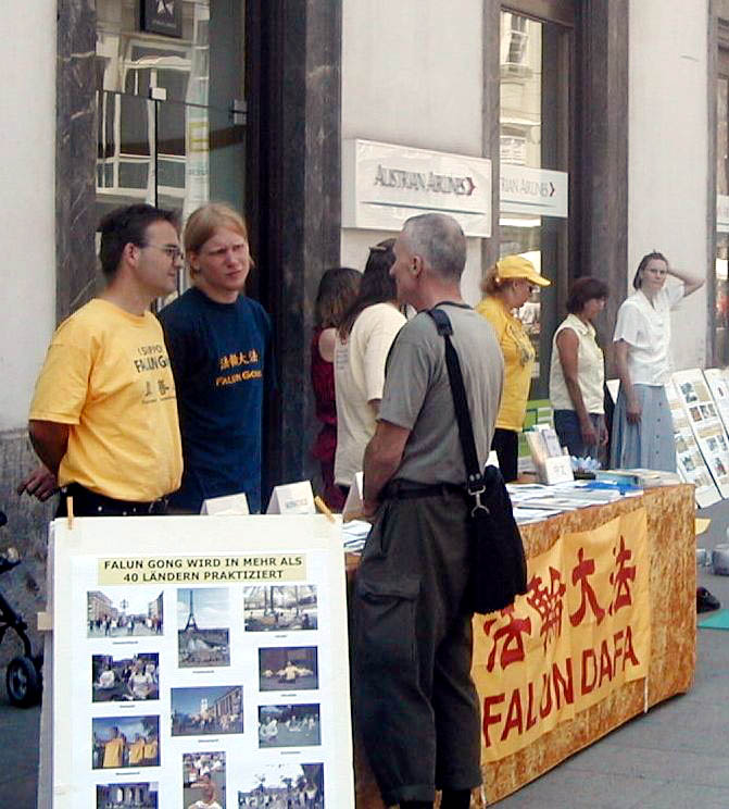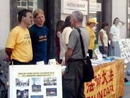 很多人来到展位旁询问他们如何才能帮助法轮功学员,他们在请愿书上签字,并倾听学员讲述详细的情况。一位老人在展位旁呆了近3个小时,开始时他有很多偏见,他不能够理解,如果法轮功这么好且又不参与政治,为什么会遭到镇压。学员用自己的体会和经历,用事实向他讲解,说这么多法轮功的修炼者不仅得到了一个健康的身体,而且尽量做一个更好的人。法轮功学员举办这些活动不是为了反对政府和国家政权,而是为了让中国停止这场迫害。听了这些之后他衷心地感谢学员并拿了所有的真相资料,他说他要读《转法轮》这本书。