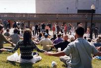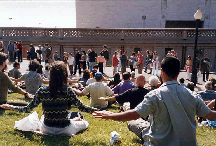 一走进博览会入口大门,首先映入人们眼帘的便是在草坪上正在展示优美功法的法轮功学员们的身影。不怪人们说“法轮大法是健博会的一道特殊景观”。博览会主办者也开玩笑地对我们说:“你们法轮大法快成了博览会的专场展示会了。你们知道吗?法轮大法是唯一享有可以在室外展示这一特权的参展者。”