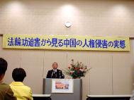 最后「法轮功难民申请者支援会」会长广濑教授向来宾表示谢意并谈了他对这次研讨会的感想。他说,大家活生生的讲演使我意识到这场迫害的严重性比我想象的还要严重。当权者对权力比酒还容易醉,醉在权力中只要发号施令就会很容易被只是按命令行事的人传递下去从而如愿以偿,这一点是可以想象的。在现场如果有几万人的受迫害者那么就要有几万人数倍的迫害者。那其中良心犹存的,有一天良心发现的时候,汇合在一起就会像大河决堤一样涌上来,从而使现存体制崩溃。就是说使我感觉到是这样的一种严重程度的迫害。根据角间隆先生的讲演,我感到中国把应该用在社会保障上的钱都用在了镇压上,希望日本的媒体能作特辑来报道。