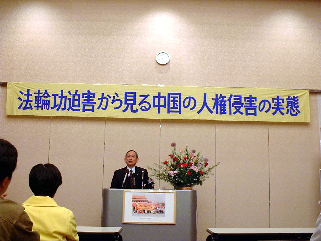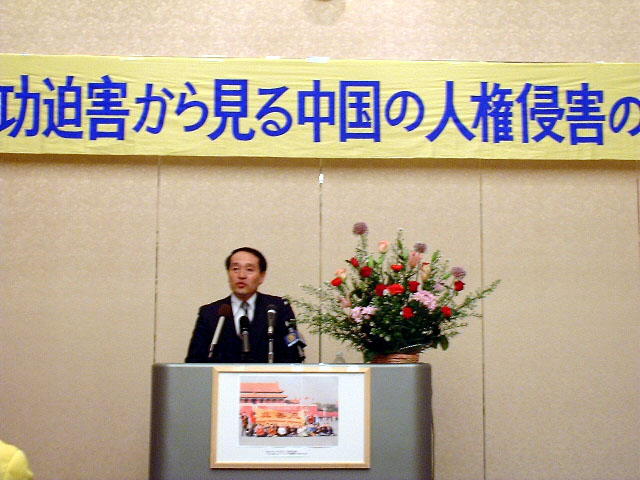 会议理事长·角间隆先生以「中国的情报统制与法轮功的真相」为题做特别讲演。他以大量翔实的事实,高度评价了遭受残酷迫害的法轮功学员所体现出的和平与理性。他说,在这四年里,我一直关注着「法轮功」。在这期间,世上发生了多少血腥的、以眼还眼,以牙还牙那样的厮杀。冷战后仍持续10年以上。几十万,几百万的人在摸爬滚打,互相残杀中死去。然而「法轮功」暴力反抗的事情一次也没有发生过。尽管直至今天「法轮功」仍遭受着残酷的迫害,但是却没有一人手持武器,挥起镰刀给那个不正的官方一个打击。当然有关这一点,在那本「法轮功」的圣典(编者:指《转法轮》)里早就写的明明白白的了。所以现在我越来越相信「法轮功」了。