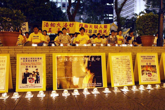 有人呼吁游行人士穿着着色衣服参加「反对23,还政于民」游行,上身穿黑衣表达反对二十三条,下身穿黑裤黑裙表示「倒董」。不过,香港法轮功学员今天仍一如既往穿上黄色的炼功服参与,而且也不会高喊口号,作无声抗议。