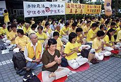 中央社7月9日报导,香港法轮功组织二百多名学员,包括来自台湾的二十一名学员,九日在立法会外静坐示威,反对香港政府就基本法第二十三条立法。