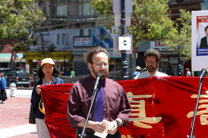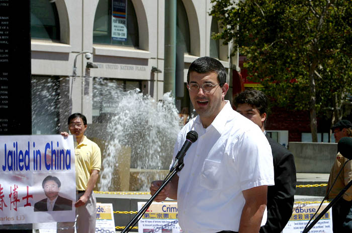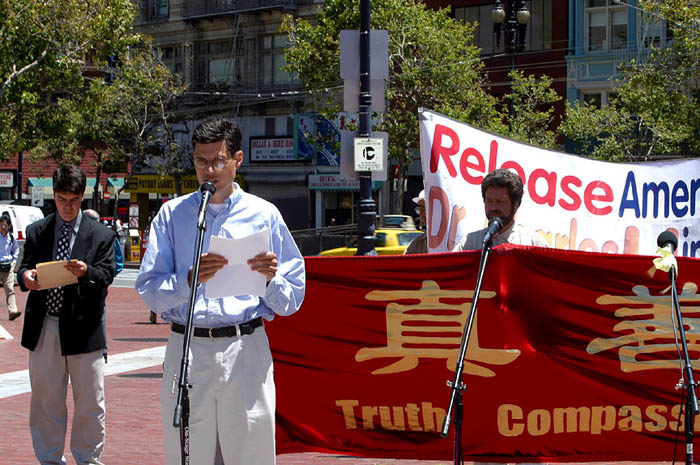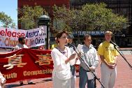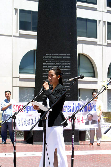 李祥春医生的未婚妻符泳青女士、来自国际特赦和世界反香港23条立法联盟的代表和一位刚刚自北京来到美国的法轮功学员随后发言。他们揭露和谴责中国政府对法轮功的迫害,要求立即释放李祥春医生,并让他安全的回到美国。