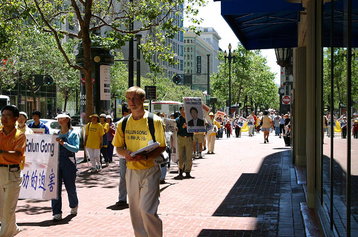 集会结束后,百余名各界人士高举停止迫害法轮功,还李祥春人身自由等横幅和标语,从联合国广场游行至贾斯廷-荷曼(Justin Herman)广场。结束了这次的营救活动。