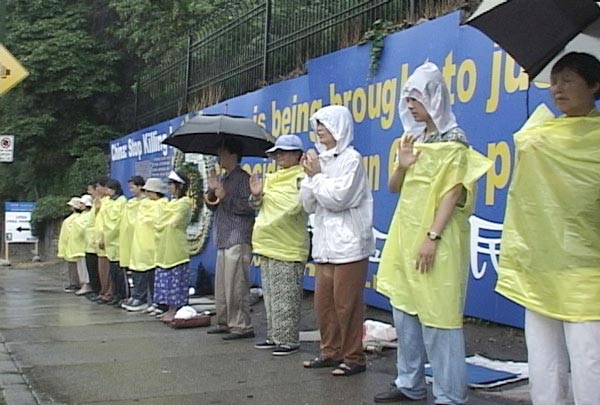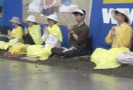 周六下午在中领馆前发正念时,也经历了一场倾盆大雨。大法弟子在邪恶残酷的迫害下,靠正信正念正行,走过了四年。我们正法中的任何一次活动岂是一场雨能阻挡得了的呢。