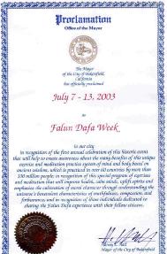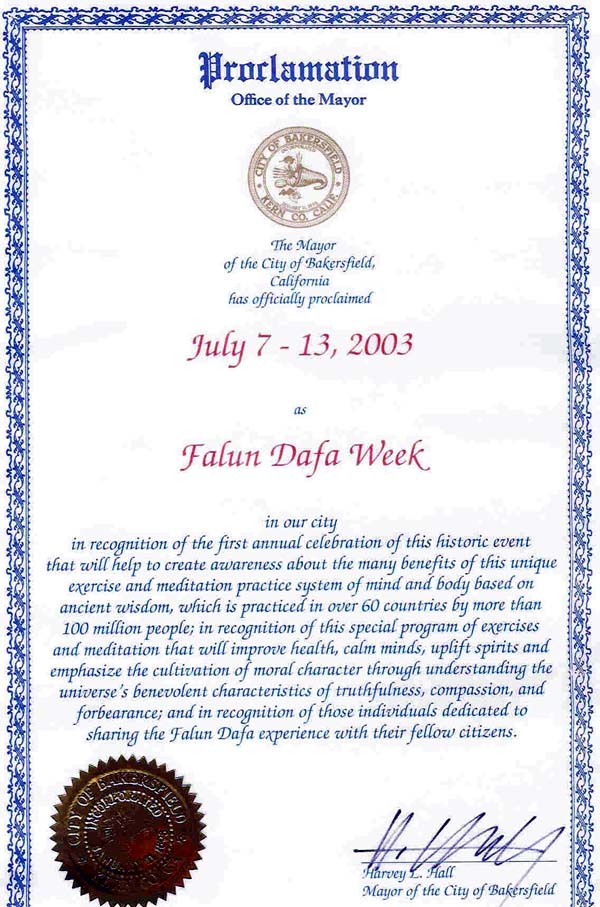 以嘉许这一具有历史意义的首届年度庆祝活动,这次活动将会让公众了解这项独特的以古老的智慧为基础的身心修炼系统的诸多益处。法轮大法在世界60多个国家洪传,有一亿多人修炼;