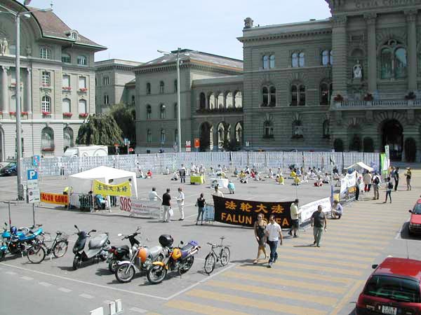 法轮功学员们在这次活动中展示了5套功法。在新闻发布会上学员们回顾了4年来江政府对法轮功的残酷镇压和时事,如“非典”和香港的恶法23条。“基督行动反对迫害”(ACAT)非政府组织的发言人发表了演讲,学员们还朗读了一些议员的支持信件。