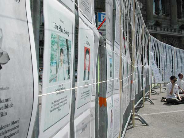 42米长的“悼念墙”上的被害者的照片吸引和感染了许多过路行人。许多人把注意力集中在墙上的介绍,上面描述了受害者如何被迫害之死的经过。整个墙已经使人们清楚地意识到这场迫害的严重性及其规模。许多人都谈到:“我知道你们被迫害,但是,我不知道的是,情况是如此的糟糕。”墙上的900多张照片打开了人们的眼睛,人们明白了迫害的严重性。