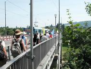 花圈和鲜花显示了我们对被害者的悼念。有位先生问到:“你们有没有中国使馆的地址,邮件地址或者网络地址,我们应该阻止他们,强烈抗议中国政府的这种行为。”许多人都走完了42米长的“悼念墙”,了解到了真相。学员们向感兴趣的人们散发了自作的荷花。有些过路人要学炼法轮功。“悼念墙”以其独特的方式获得了许多过路人对我们的理解和支持。